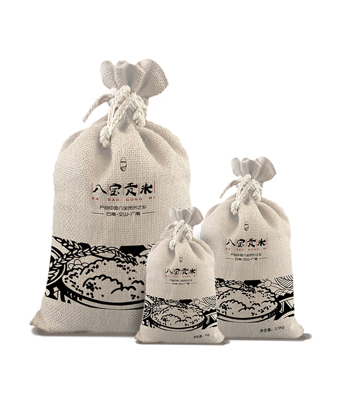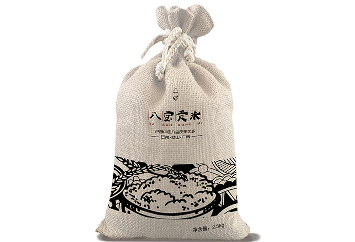 此款采用的是帆布制作而成的一種五斤裝的大米雜糧束口袋